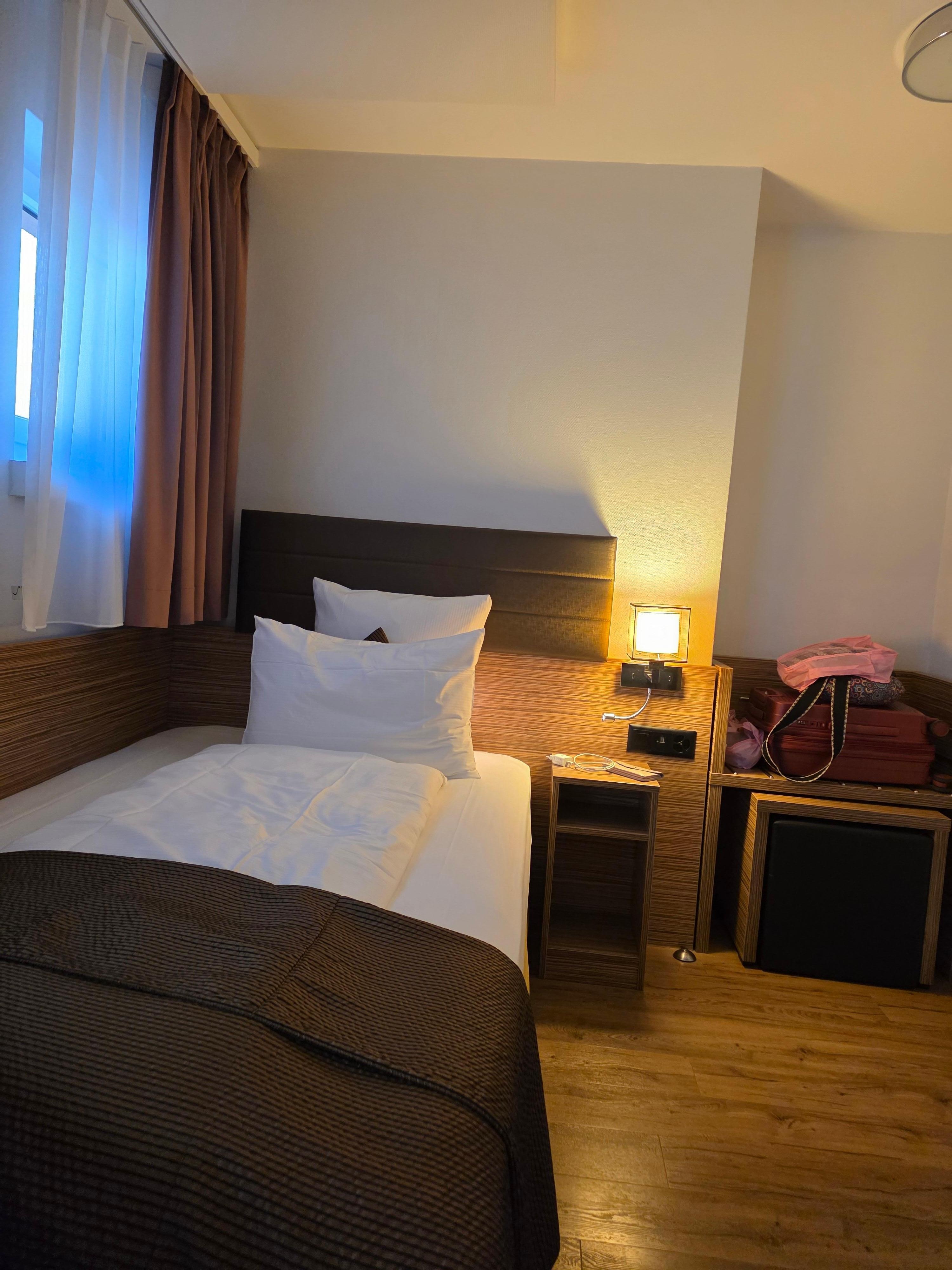 I thought this hotel is in an great location with supermarkets a few yards away. Plenty of restaurants around also. The staff were great on arrival we arrived earlier then expected and room was already for us which we really appreciated. Tram stop only a few yards away also 6 stops your in ciry centre. Overall a fantastic stay thank you.