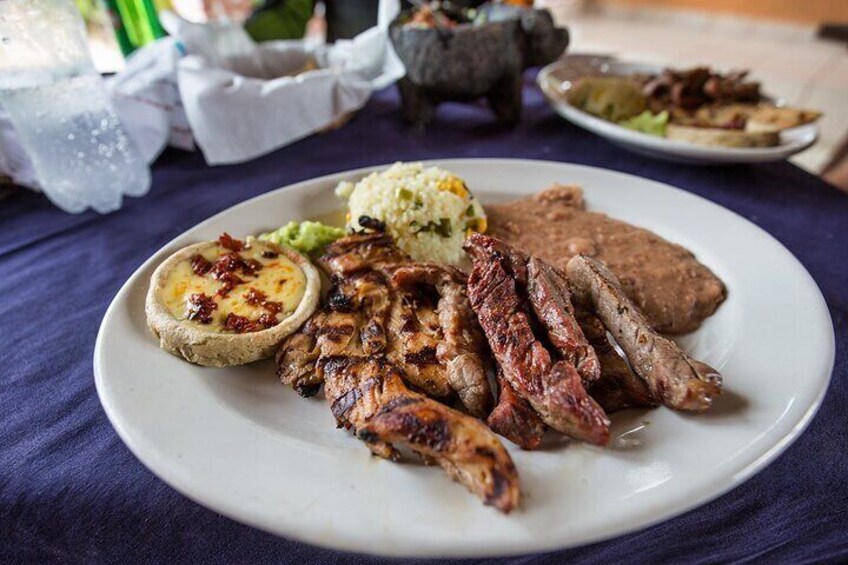 Para terminar este día lleno de acción, disfrute de un almuerzo tradicional mexicano. Saborea deliciosas fajitas o pollo a la parrilla con tortillas hechas a mano, frijoles, arroz y rico guacamole y salsa preparada por ti.