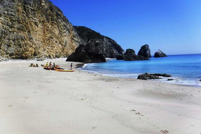 Salga del punto de encuentro en Lisboa y diríjase al punto de partida de su viaje en kayak. Rema por la costa con tu guía, quien te mostrará cuevas y calas secretas a las que solo se puede acceder desde el mar. Visita playas secretas mientras te diriges hacia la extraordinaria formación kárstica de Gruta do Frade.