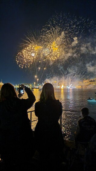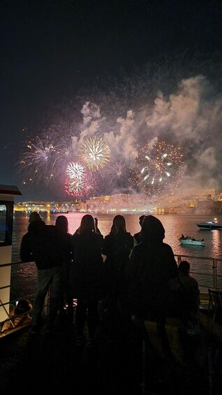 Navega por el magnífico Gran Puerto de La Valeta y ancla para disfrutar de impresionantes vistas de primera fila de una espectacular exhibición piromusical, donde los fuegos artificiales explotan a un ritmo perfecto con música contra el horizonte histórico.