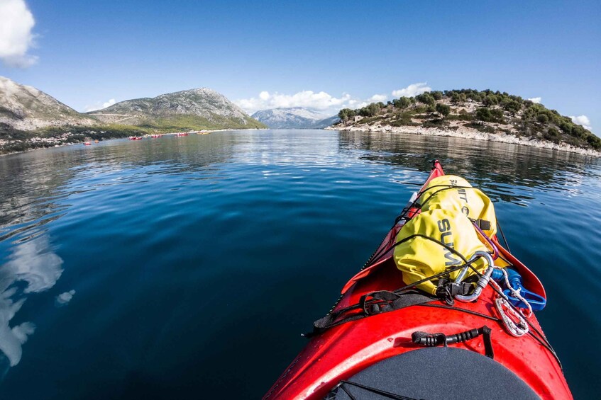Súbete a un kayak para disfrutar de un día completo de exploración en las aguas cristalinas que rodean el archipiélago de Lefkada, conocido por ser uno de los mares más protegidos y tranquilos del mundo. Realice un recorrido por una cueva, practique esnórquel en un arrecife de coral y haga paradas para tomar un refrigerio y almorzar en playas remotas.