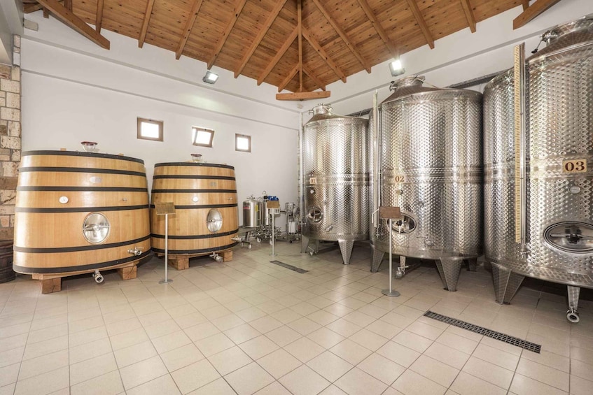 Continúe hasta la segunda bodega (Ktima Akrani) guiado por expertos expertos y emprenda una visita guiada por las instalaciones de la bodega. Serás testigo del cuidadoso proceso de recolección de la uva, el arte de la fermentación y la paciente maduración de los vinos en barricas de roble. El suave zumbido de la maquinaria y el aroma de las uvas en fermentación tejen un tapiz de placeres sensoriales.