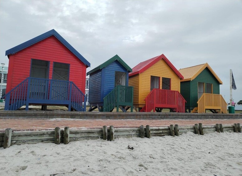 Una parada en Muizenberg donde los viajeros verán las coloridas cabañas de playa desde la cima de la montaña, las cabañas de playa utilizadas como vestuarios.