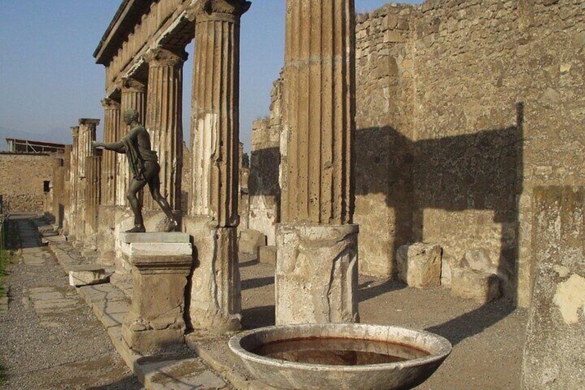 Durante este tour de 2 horas por Pompeya, aprenderás sobre la vida cotidiana de los romanos en el siglo I d.C. Tendrás una audioguía o guía física detallada (si se alcanza el número mínimo de participantes por idioma, 6). Pasea por el teatro, donde los ciudadanos disfrutaron de actuaciones; por la antigua calle comercial llena de panaderías y pizzerías conservadas; y, las casas del hombre más rico de Pompeya. Desde allí, podrá ver los sitios tradicionales de Pompeya, incluyendo la necrópolis, el foro y las casas de baños.