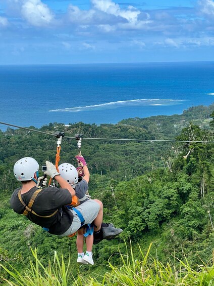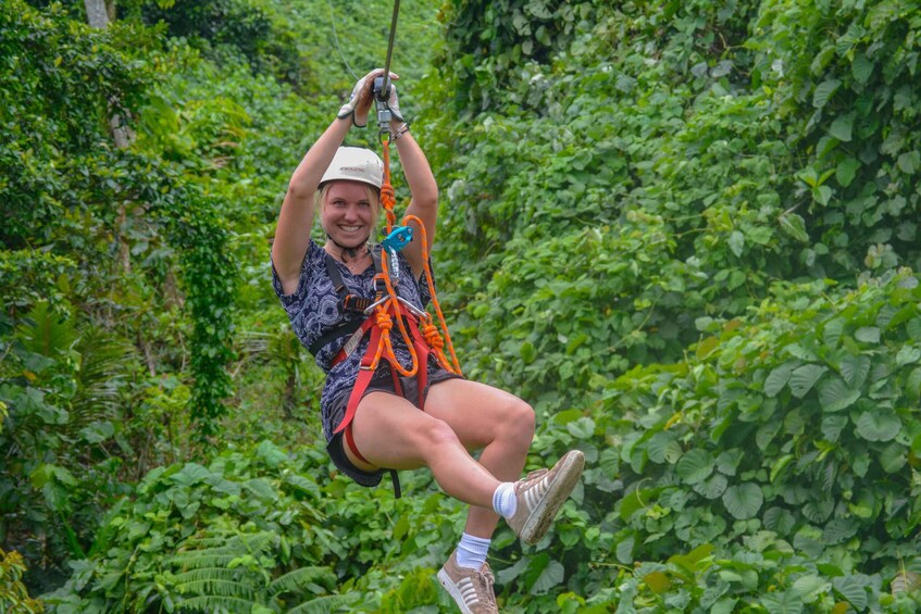 Surca el dosel de la selva tropical y disfruta de un fantástico zumbido mientras conduces 6 tirolesas con un total de 1,5 km y el mirador Skybridge de 120 metros. Deslízate en tirolesa por cañones y barrancos disfrutando de la exuberante jungla y de las impresionantes vistas del agua y la jungla. Siente el viento en la cara. Diseñado para personas de movilidad y fuerza medias que gozan de una salud razonablemente buena. De 5 a 80 años. Restricción de peso: 120 kg. Circunferencia de cintura máxima de 120 cm. No apto para mujeres embarazadas. La buena movilidad es esencial, ya que hay senderos irregulares en la jungla y aproximadamente 3 tramos de escaleras.