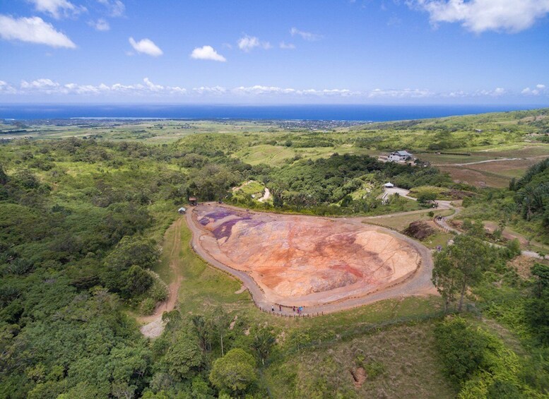 Por último, llega la hora del Parque Natural La Vallée des Couleurs. Este parque, que alberga la famosa tierra de 23 colores, ofrece una variedad de actividades de aventura, como paseos en cuatriciclo, tirolesa, recorridos en jeep, paseos en buggy, senderismo y puentes colgantes. Además, el parque ofrece impresionantes vistas de la parte sur de la isla, ya que está encaramado en una colina.