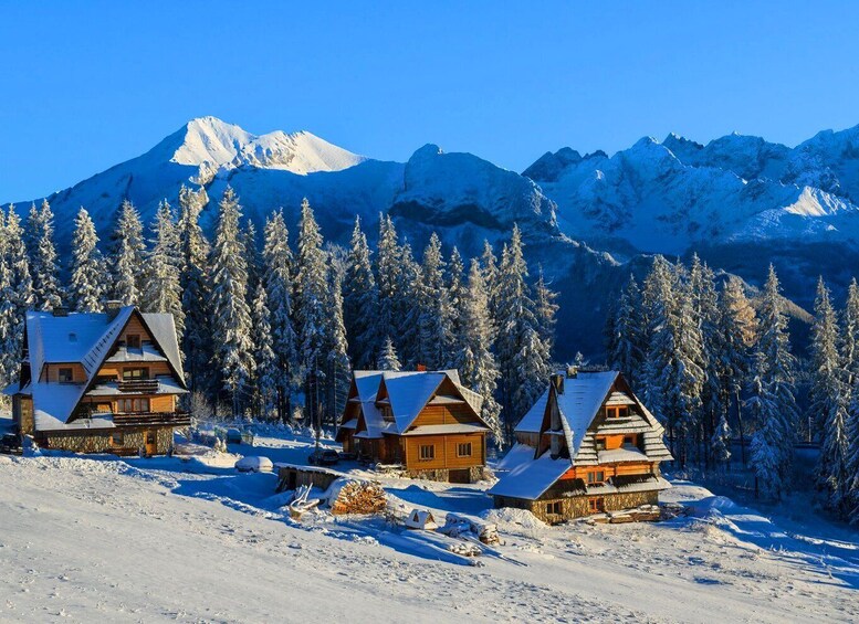 Explore las montañas Tatra en un viaje grupal de un día desde Cracovia con traslados al hotel y un guía. Explora Chocholow, un museo viviente de edificios históricos de madera, y prueba el queso y el alcohol regionales. Conduce en el funicular Gubałówka, explora Zakopane por tu cuenta y relájate en un baño termal.