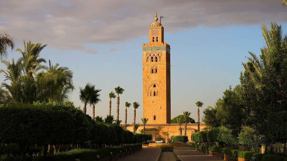 Jardines de la Mezquita Koutoubia — Admire la belleza de la mezquita más grande de Marrakech desde sus serenos jardines.