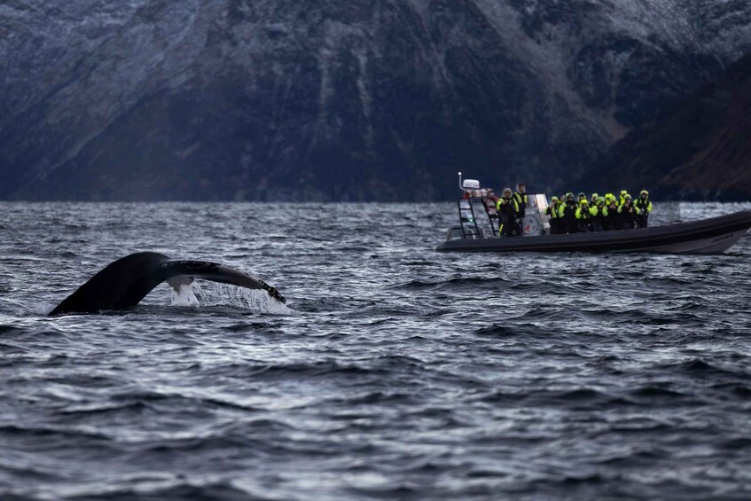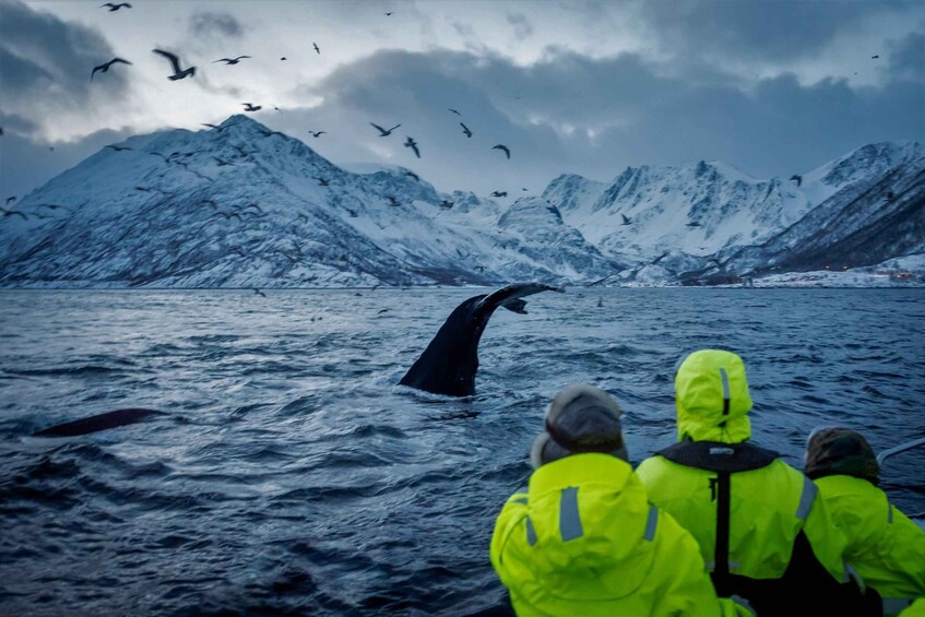 En invierno, las ballenas vienen a cazar a los fiordos ricos en arenques del norte de Noruega. Esta es una oportunidad única para ver de cerca a las ballenas mientras exploras los hermosos fiordos del norte de Noruega.