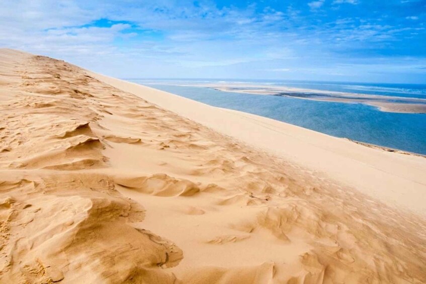 Por la tarde, subiremos a la duna de arena más grande de Europa, la duna de Pilat (o Pyla), un sitio natural increíble y único con una vista impresionante desde su cima.