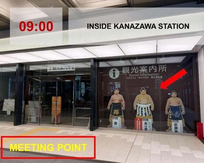Este recorrido comenzará en la estación de Kanazawa a las 9:00 a.m., donde su guía lo recibirá frente al centro de información cerca de las puertas de boletos del Shinkansen.