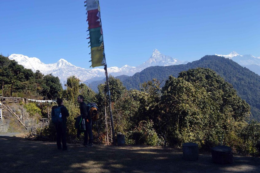 Embárcate en una pintoresca excursión de 2 días con pensión completa desde Pokhara hasta el campamento australiano. Camina por frondosos bosques para disfrutar de impresionantes vistas de la cordillera del Annapurna. Pase la noche en una casa de huéspedes de montaña con opción de dos días.