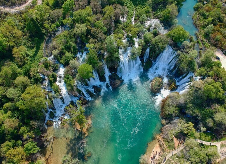 Después de su estancia en Mostar, visitará el Parque Nacional de Kravice. Al descender al valle del río Trebizan, las cascadas dan forma a piscinas de color esmeralda, que son atracciones naturales excepcionales. Nade al borde de las cascadas en las piscinas naturales antes de regresar a Split.