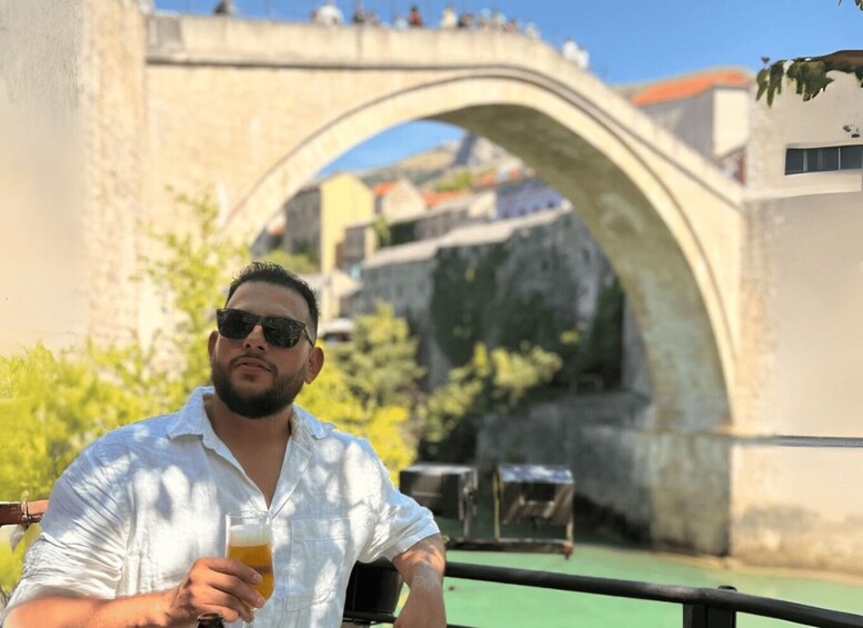 Una vez que llegue a Mostar, se sorprenderá por su arquitectura, cultura, gente y rica historia. Explore la ciudad con su guía turístico y conozca la fascinante ciudad. Mostar es un verdadero ejemplo del estilo de vida balcánico y te inspirará con sus calles antiguas, mezquitas, deliciosa comida y el icónico Puente Viejo que se extiende sobre el río Neretva y conecta los dos lados de la ciudad. Si tienes suerte, podrás ver a uno de los buceadores de Mostar saltando a un río helado, una tradición desde 1968. Luego tendrá 2 horas de tiempo libre para explorar Mostar y no se olvide de probar los famosos platos bosnios: Burek y Baklava.