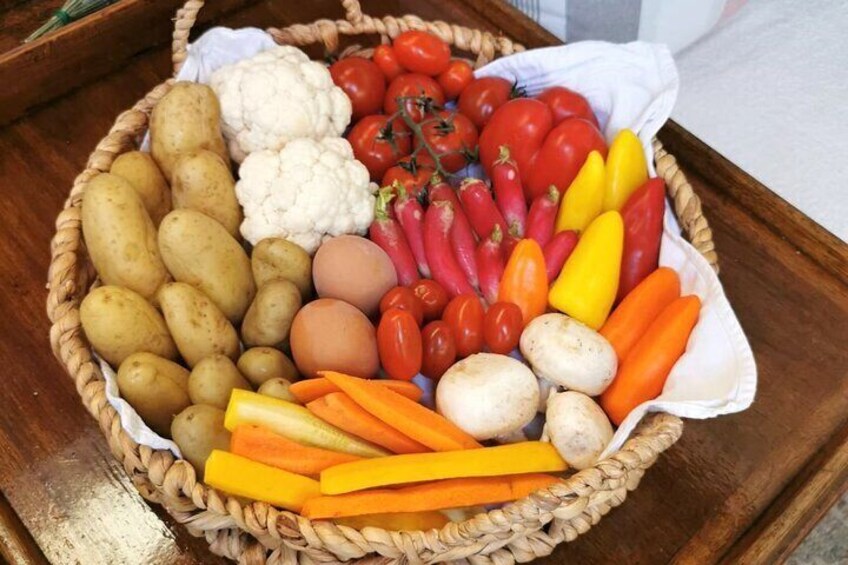 Picnic provenzal: Anchoïade y un tzatziki, con una cesta de verduras crudas y vino rosado.