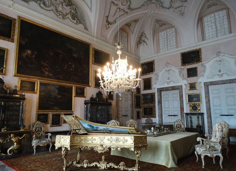 Descubriremos en este fascinante viaje la máxima expresión del barroco con la Galería Berthier con sus pinturas, la Sala del Trono, la Sala de la Reina y la Sala de Tapices, hasta las magníficas cuevas completamente cubiertas de piedras y conchas, creadas para asombrar a los huéspedes transportándolos a un mundo marino mágico.