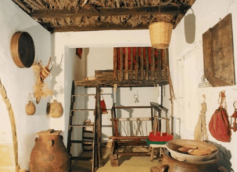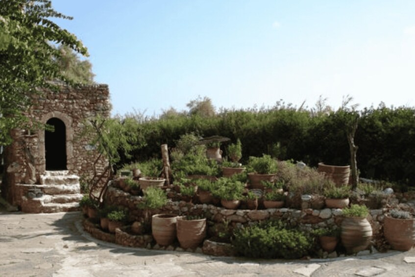 Visite las viviendas tradicionales, la capilla, la prensa de aceite de oliva, la destilería de tsikoudia (raki), la trilladora, la tienda de cerámica, el taller de tejido y teñido de plantas, el taller de abejas y cera, el taller de fabricación de zapatos, la carpintería, el herbario, el jardín de frutas cretenses, el jardín de hierbas, la exposición de minerales y piedras, la galería de artistas populares cretenses y más.
