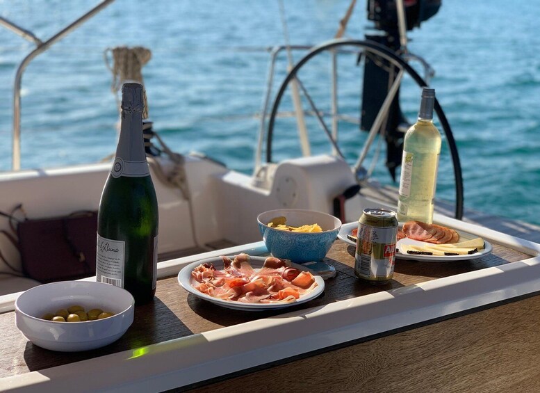 Deléitese con deliciosos bocadillos mientras bebe cava, vino, cerveza o bebidas refrescantes. Captura fotos impresionantes con la amable tripulación a tu lado y crea un registro duradero de tu aventura en la isla.