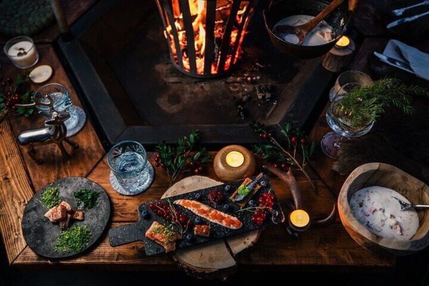 RRIVATE Pesca en hielo Scooters de nieve Almuerzo de 3 platos en un iglú de cristal