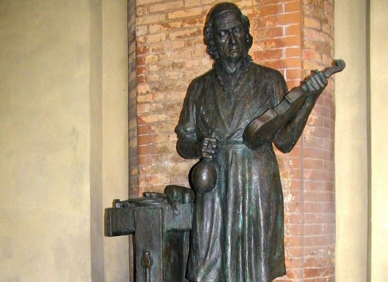 A tan solo unos pasos, podemos admirar la casa donde vivió el ciudadano más ilustre de Cremona, el reconocido luthier Antonio Stradivari, con su primera esposa en el 1600. Es mundialmente famoso por sus violines y su sonido único, y la ciudad de Cremona lo honró con una estatua frente a su antigua casa.