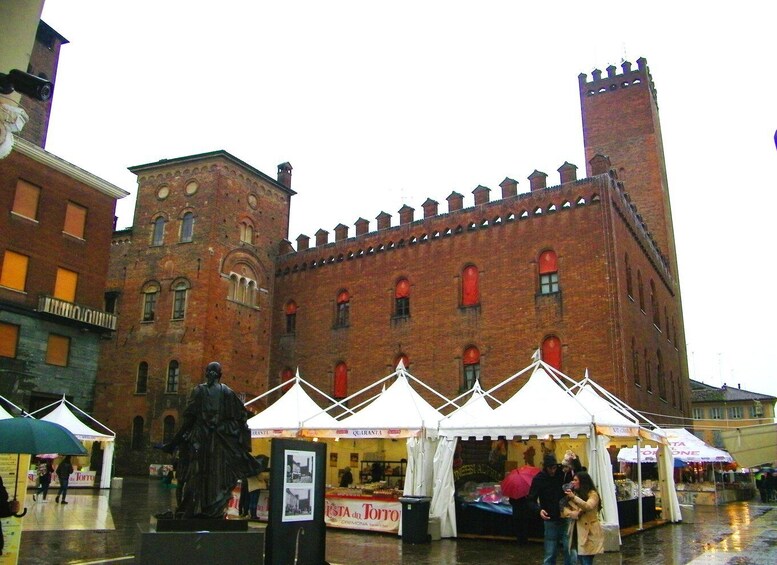 La visita guiada continúa con una visita exterior al Baptisterio octogonal, que data de la década de 1100, y el Ayuntamiento medieval, que ha estado en uso durante más de 800 años. Visitaremos la Sala de Pinturas y la Sala Consulta, que ofrece una vista panorámica de la Catedral y el Torrazzo. Antes de salir de la plaza, nos detenemos en la Loggia dei Militi, uno de los edificios históricos de la ciudad, y nos dirigimos hacia la zona donde se encuentran las pastelerías históricas como Sperlari y Vergani. Estos son los lugares de nacimiento del famoso turrón cremonés, así como el chocolate, las mermeladas y la tradicional mostarda local.