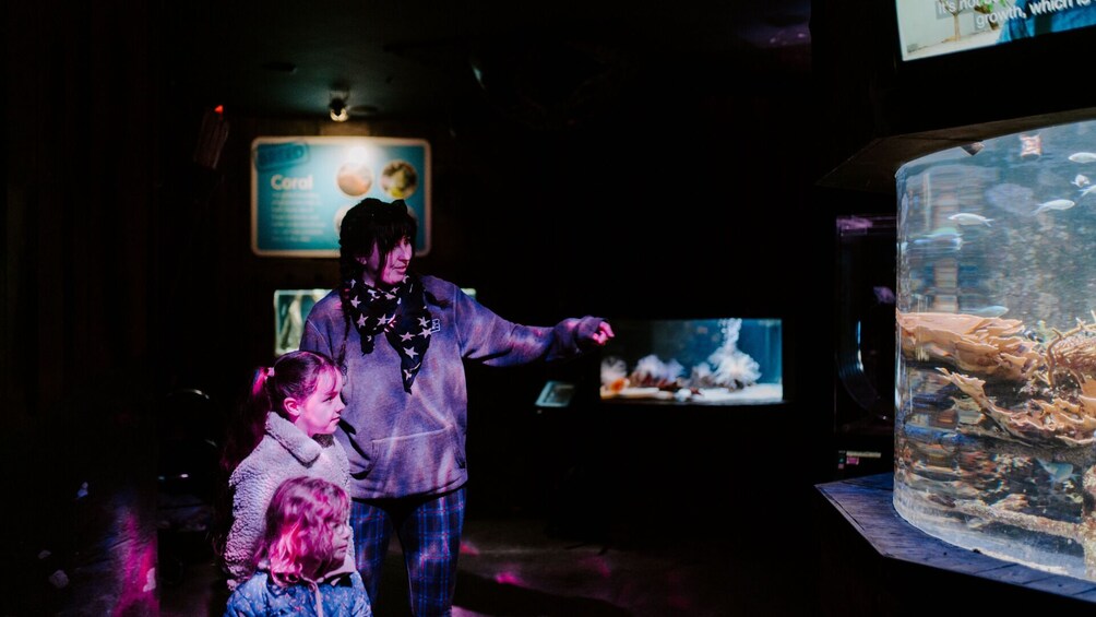 Descubra cómo se siente tocar una estrella de mar en nuestra piscina de rocas interactiva mientras aprende sobre las muchas criaturas que viven en y alrededor del mar y cómo podemos trabajar juntos para protegerlas de daños.