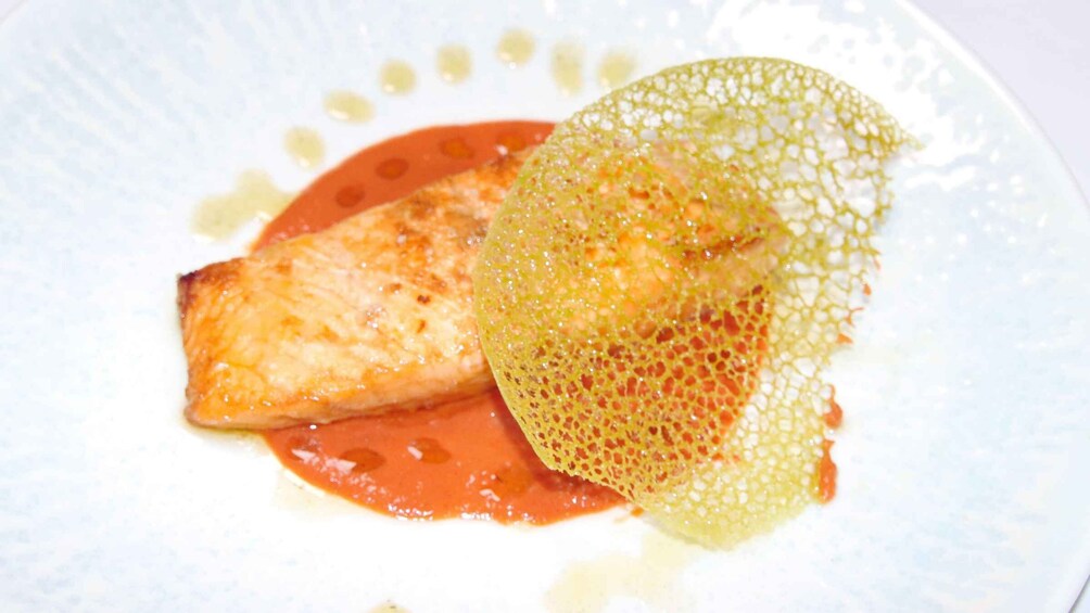 Selecciona la opción de cena de tapas comparte entre dos una bandeja de queso, jamón ibérico, y encurtidos antes de pasar a filete de sardina confitada con tomates cherry y caviar rojo sobre hojaldre caliente. Saborea el calabacín cubierto con miel de caña y un plato principal de mejilla ibérica con puré de papas.