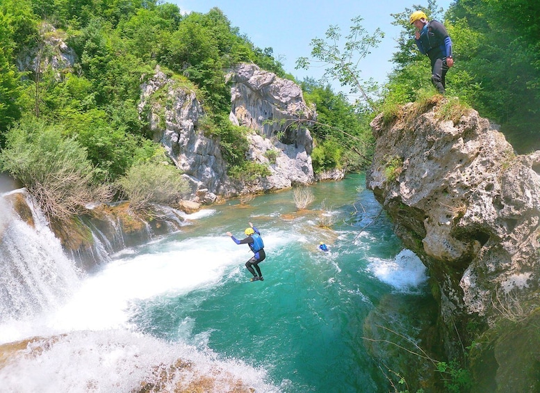Embárcate en una emocionante aventura de rafting en aguas bravas por la parte superior del río Mreznica. Recorre una larga hilera de cascadas y admira increíbles piscinas naturales. Disfrute de los elementos del barranquismo, como toboganes de agua naturales, salte desde altos acantilados y camine por el cañón.