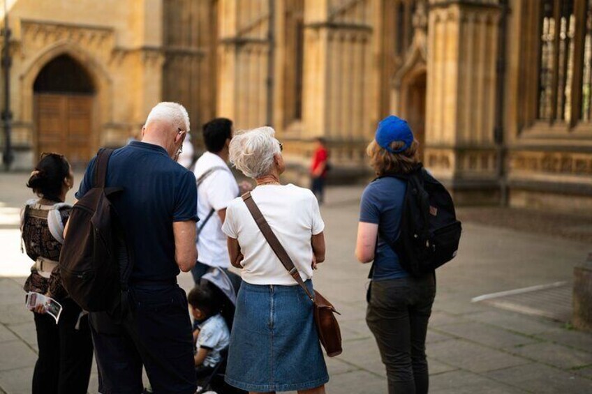 - Los usuarios de sillas de ruedas son bienvenidos en el tour. Tenga en cuenta que una pequeña zona es inaccesible, aunque solo representa unos minutos de la ruta. Algunas partes de New College también pueden ser de difícil acceso. Aconsejamos precaución debido a superficies irregulares, bordillos y posibles riesgos de tropiezos. Por favor, también tenga en cuenta los vehículos y bicicletas, especialmente en las zonas concurridas.