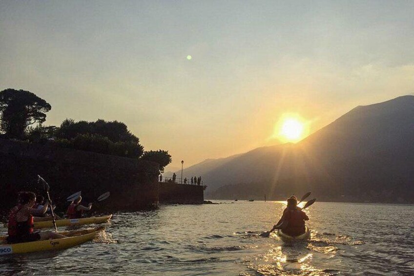 Tour de kayak en la hora dorada del lago de Como