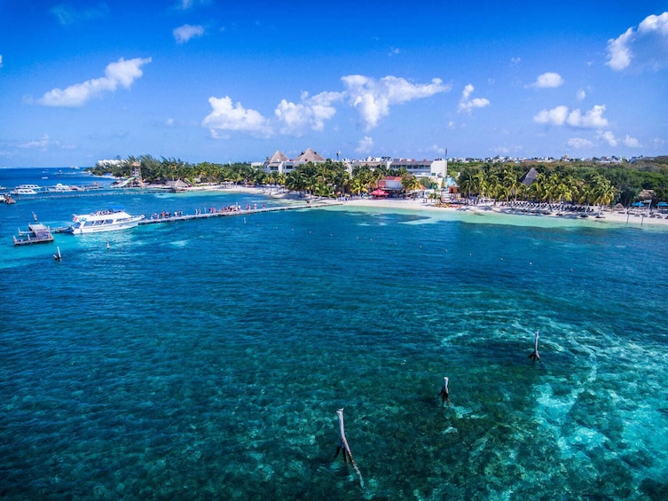 Disfruta de una experiencia completa y sin preocupaciones en Isla Mujeres. Si se selecciona, esta opción incluye recogida de ida y vuelta en el hotel desde Playa del Carmen, una barra libre a bordo del catamarán, una parada de snorkel (si el clima lo permite) y acceso a un club de playa en Isla Mujeres donde disfrutará de un almuerzo buffet y bebidas. También tendrás tiempo libre para explorar la isla a tu propio ritmo.