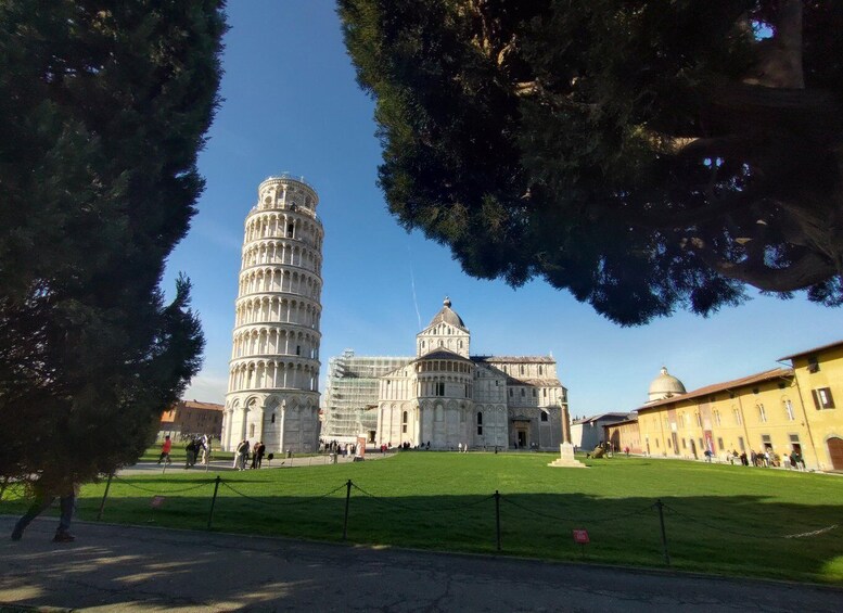 Visita guiada a la Plaza de los Milagros, visita interior de la Catedral y cata de vinos. El recorrido incluye la entrada a la Torre Inclinada.