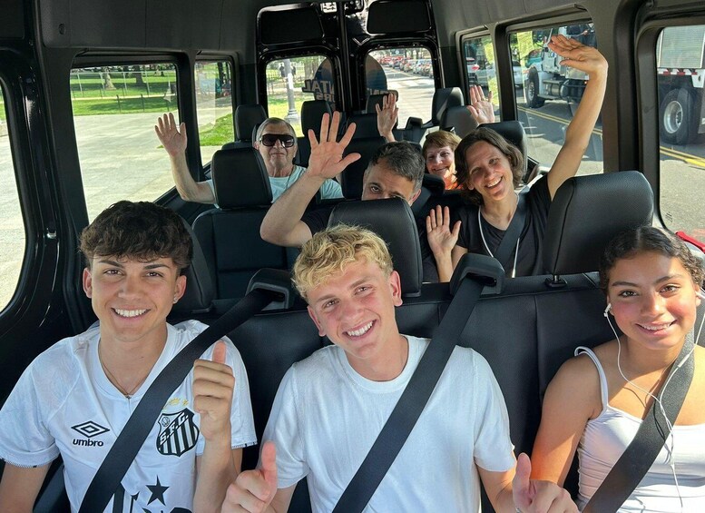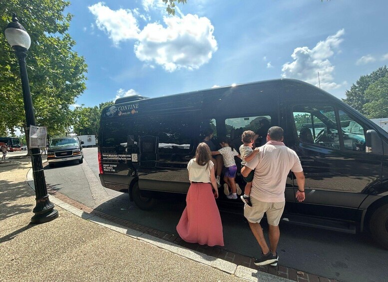 Viaja con comodidad y estilo a bordo de un lujoso Cadillac Escalade ESV o un espacioso Mercedes Benz Sprinter, dirigido por un guía profesional con licencia que también funciona como tu conductor. Sus habilidades narrativas traen D.C. ' s historia a la vida con hechos y anécdotas fascinantes. Esto no es solo un viaje en automóvil, es un viaje interactivo con muchas oportunidades para salir, explorar y tomar fotos impresionantes.